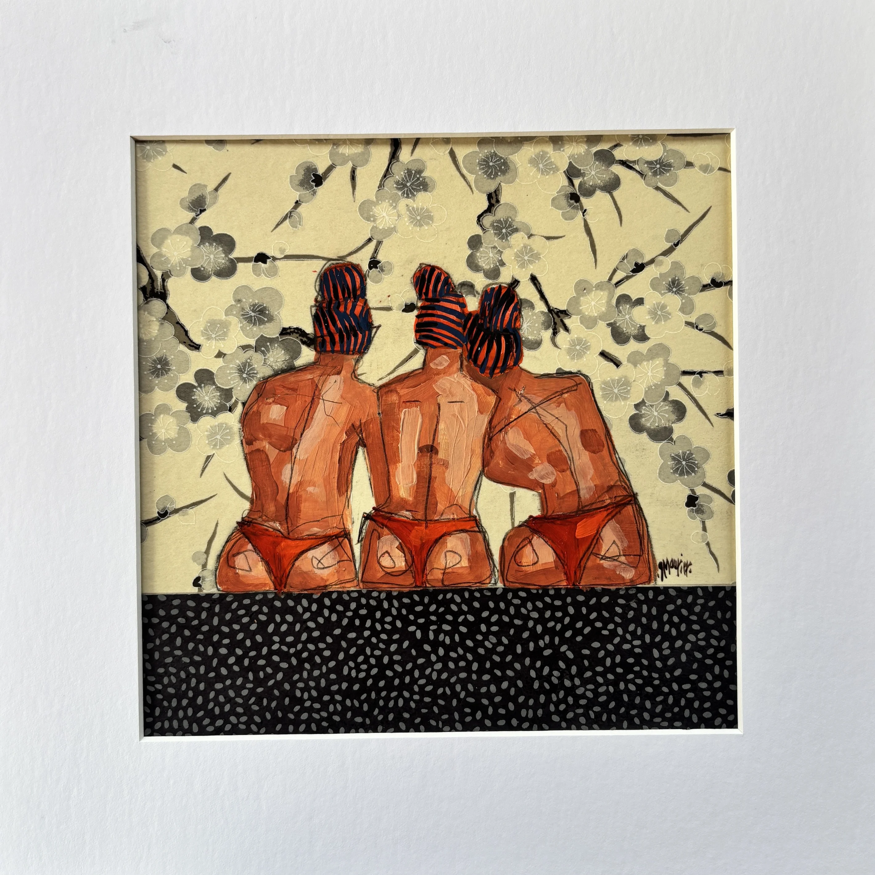Acrylic and collage on cardboard with a 30x30 mat